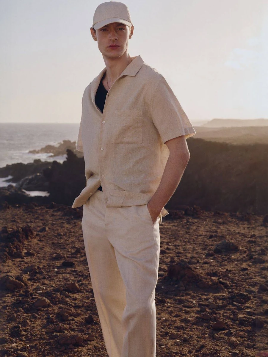 Lightweight and breathable linen blend co-ord set featuring a short-sleeve button-down shirt and matching relaxed-fit trousers. Designed for effortless summer style, this set offers a clean, modern look perfect for vacations, beach outings, and casual gatherings.
